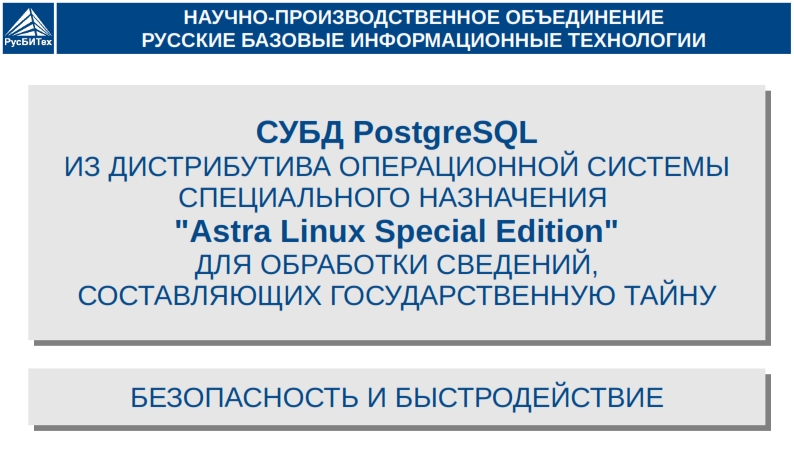 Безопасность и быстродействие PostgreSQL